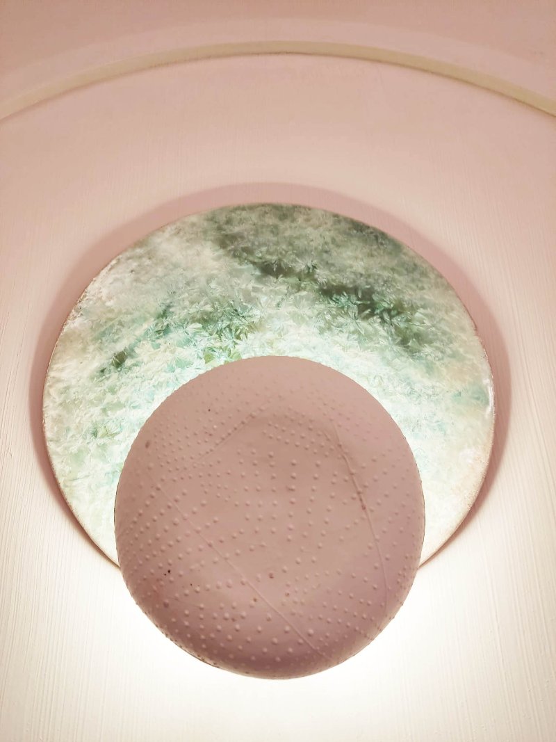 Inspirado en el paisaje del olivar de Jaén y en la vegetación de sus sierras. Realizado en porcelana y gres con esmalte de cristalizaciones.